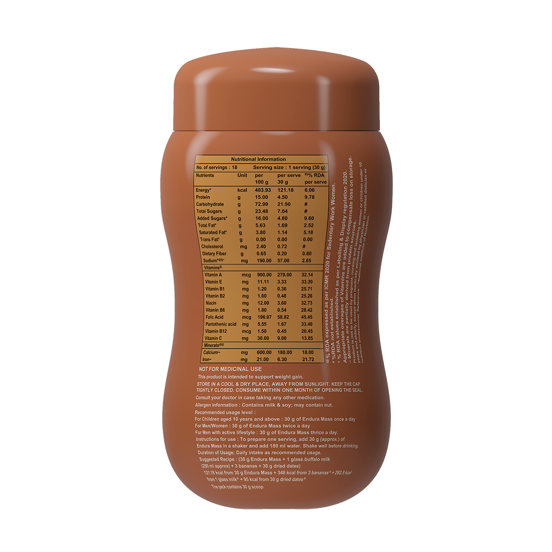 Endura Mass is a scientifically developed, advanced weight gain formula trusted by billions for over two decades. Endura Mass Weight Choco Hazelnut Flavour is 100% safe and 100% vegetarian weight gainer with no side effects.